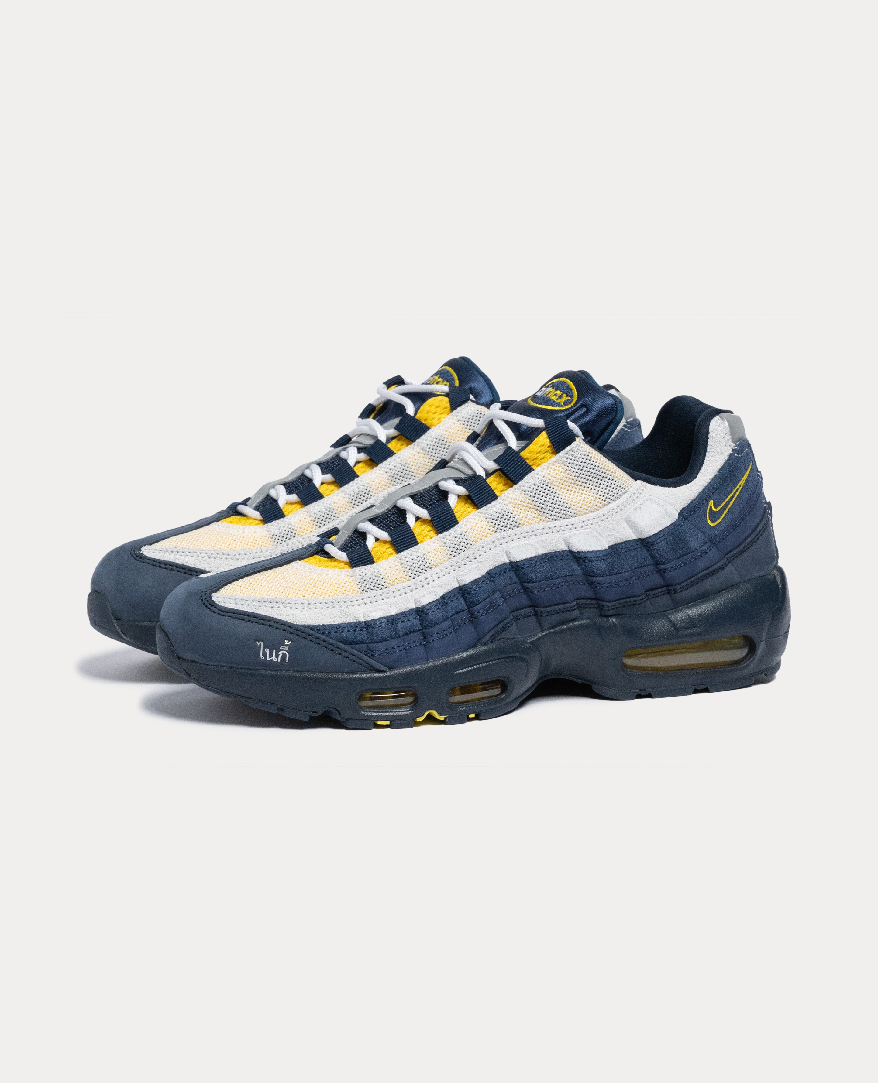 最近 Nike 出了不少 Air Max 95,但說實話,大多就是老配色換一點顏色。會進這雙 SB Air Max 95 × Eric Koston,不只是因為聯名名氣,而是這配色真的很帥。海軍藍配上白黃色細節點綴,鞋側燙銀的「โกสต์」字樣低調但有存在感,整雙保留 Max 95 原本的線條,卻不會讓人覺得老掉牙。實際穿起來好穿也好搭,寬褲、牛仔褲、短褲都能搭,不用特別想風格,日常穿就很好看。