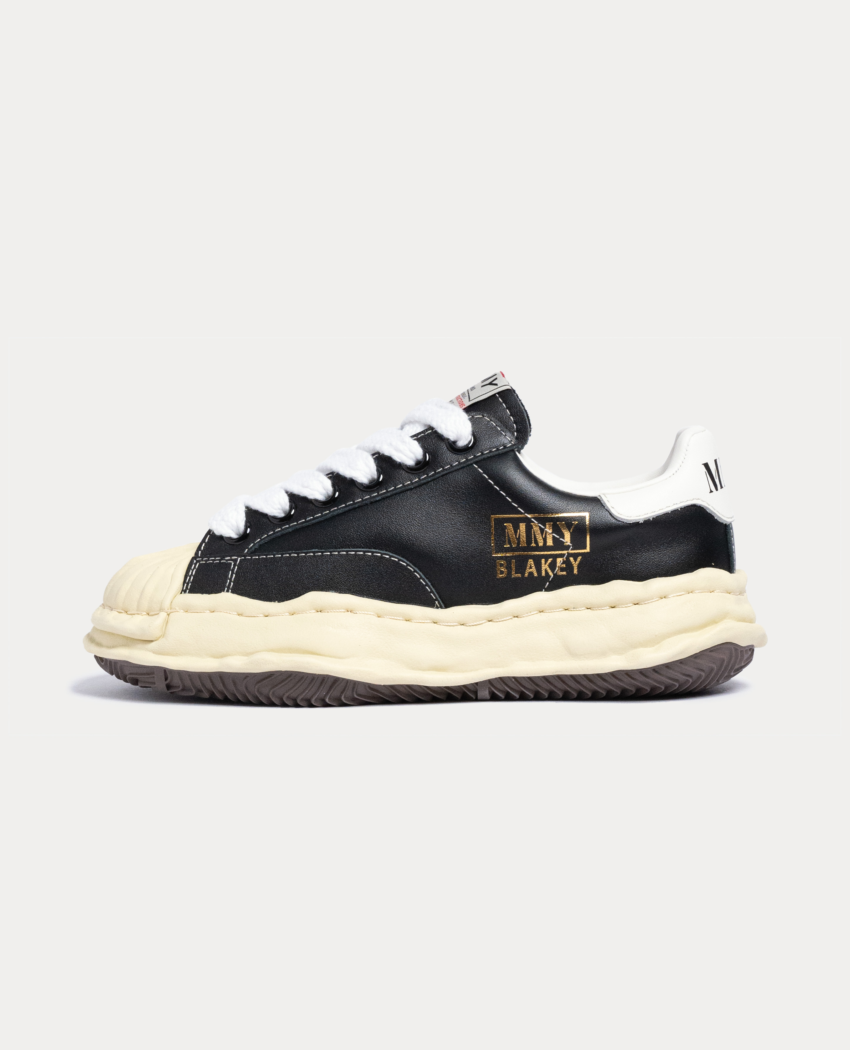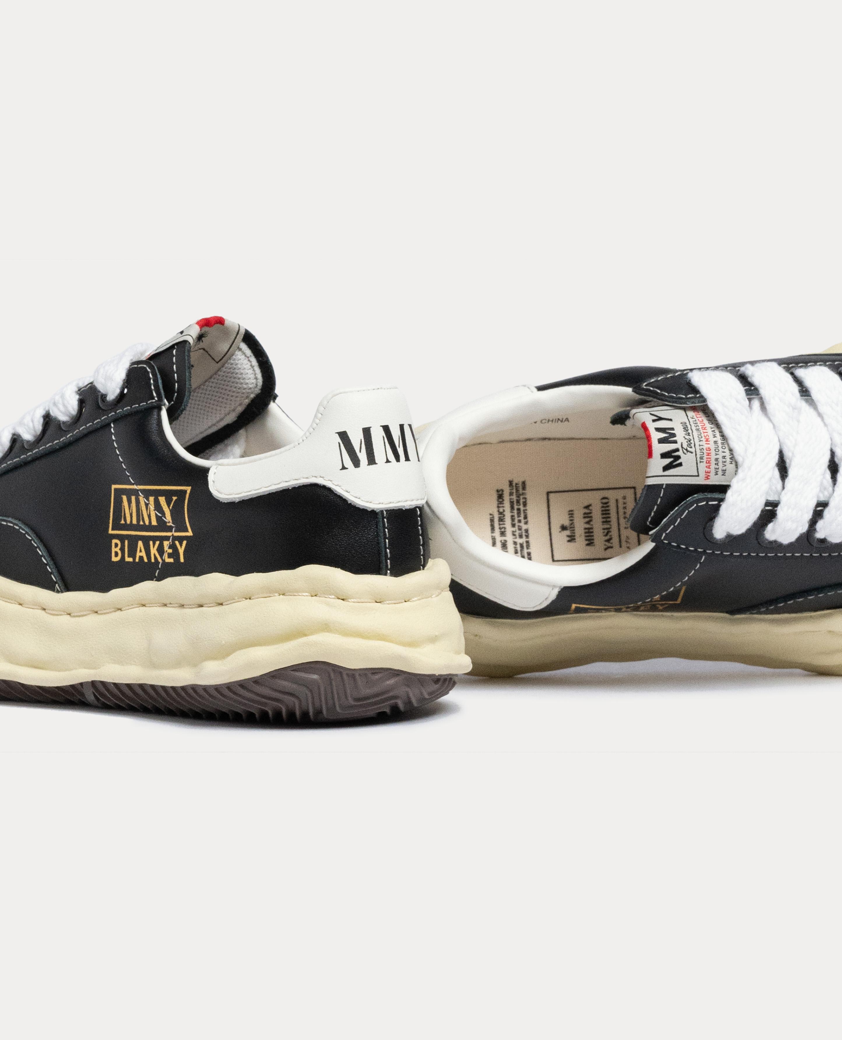 鞋型方面則借鑑了貝殼頭經典鞋款的設計,搭載了黑白皮革鞋面。持續有著厚重以及看起來不整齊的標誌性大底,鞋舌標籤則是加上 MMY 品牌縮寫字樣為設計。