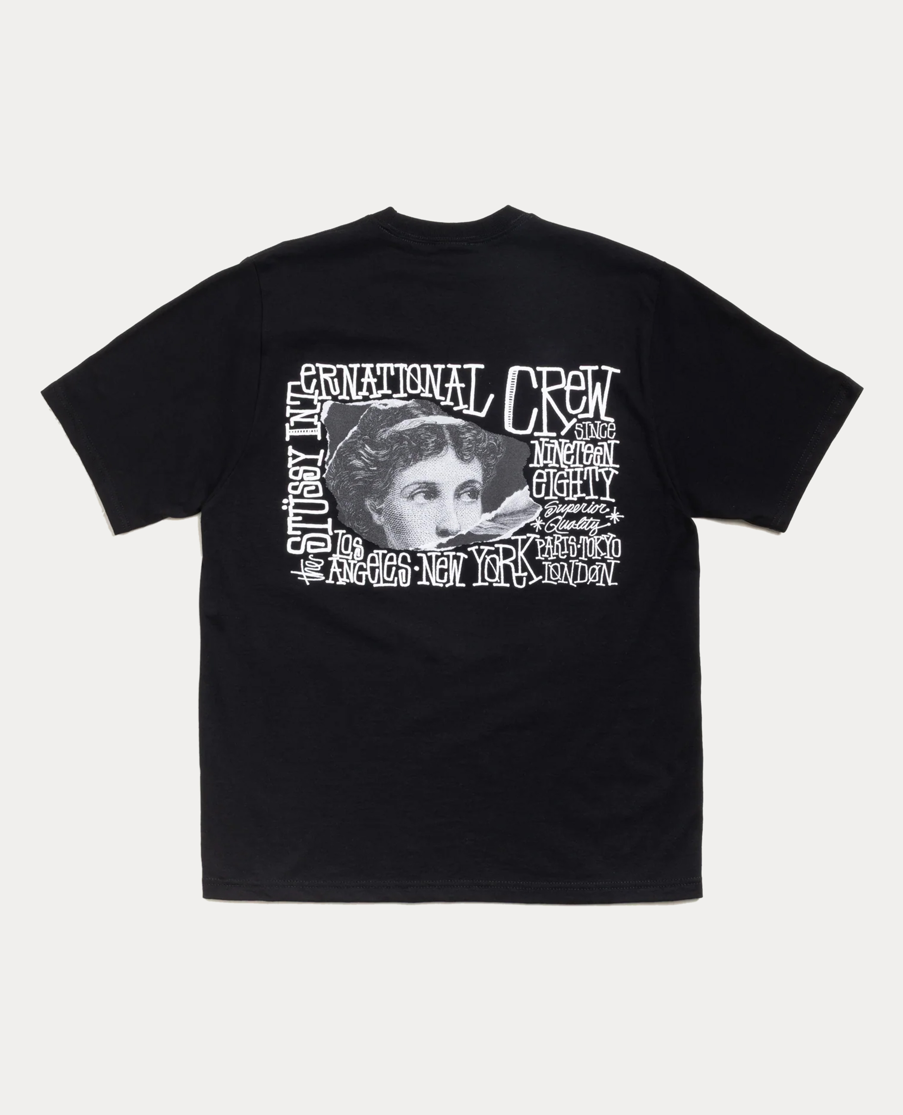 這件很讚背面是復古維多利亞人像搭配手寫字排版,整體很 STUSSY、有點惡搞但就是那種故意的復古感