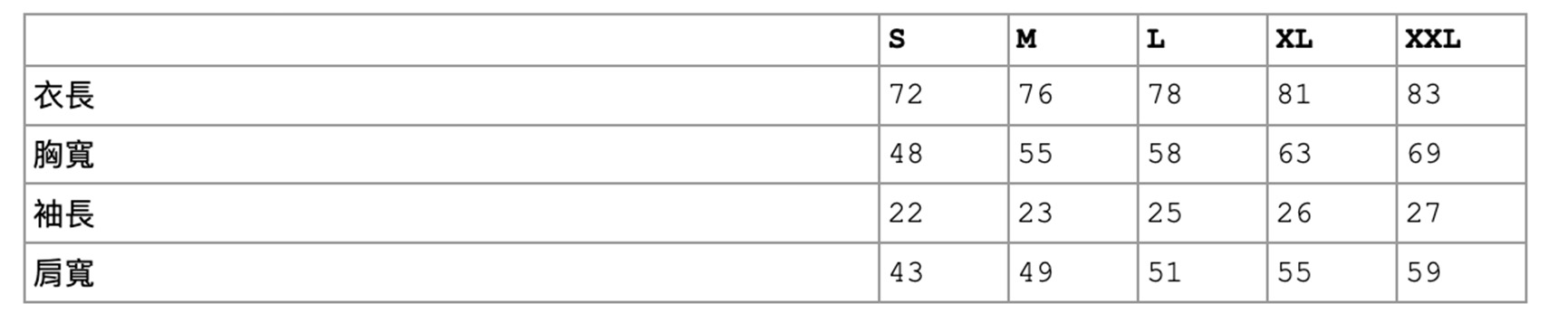 S M L XL